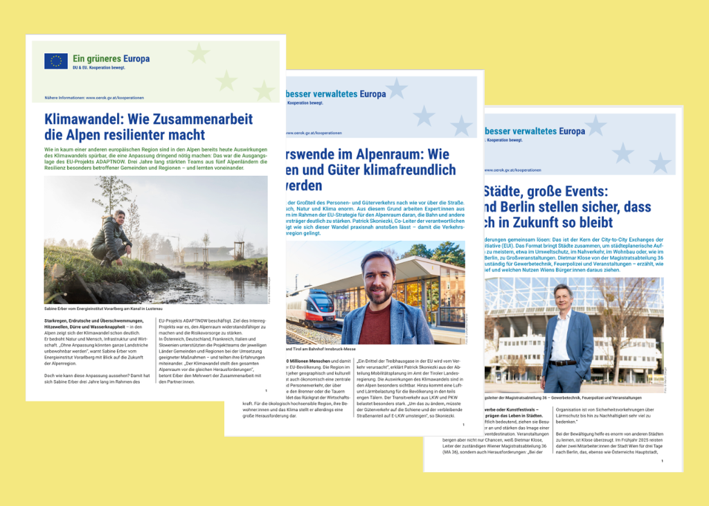 Die Case Studies veranschaulichen die Erfolge und Errungenschaften von geförderten Projekten und Initiativen mit österreichischer Beteiligung. Sie erzählen die Geschichten hinter den EU-Projekten und den beteiligten Akteur:innen aus österreichischer Perspektive und machen deren Wirkung sichtbar. Gleichzeitig wird aufgezeigt, welchen Beitrag diese Projekte und Förderprogramme zur EU-Kohäsionspolitik, zur Regionalentwicklung in Europa und zur nachhaltigen Entwicklung im öffentlichen Sektor leisten können.